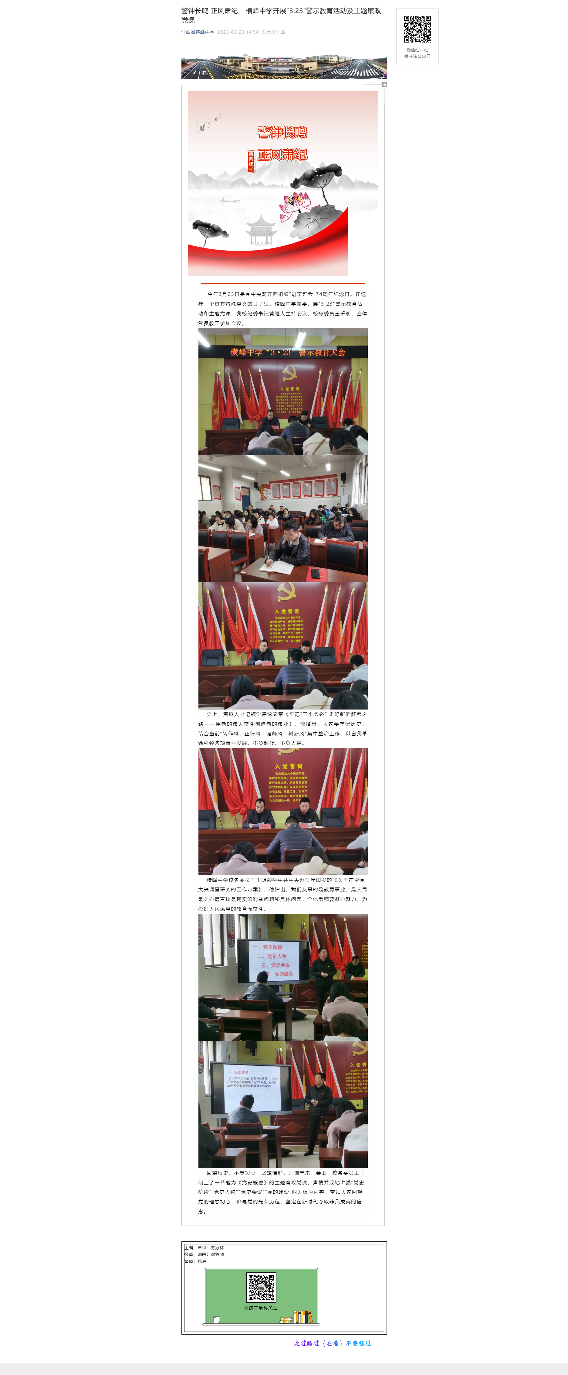 | 警钟长鸣 正风肃纪—横峰中学开展“3.23”警示教育活动及主题廉政党课 | |||