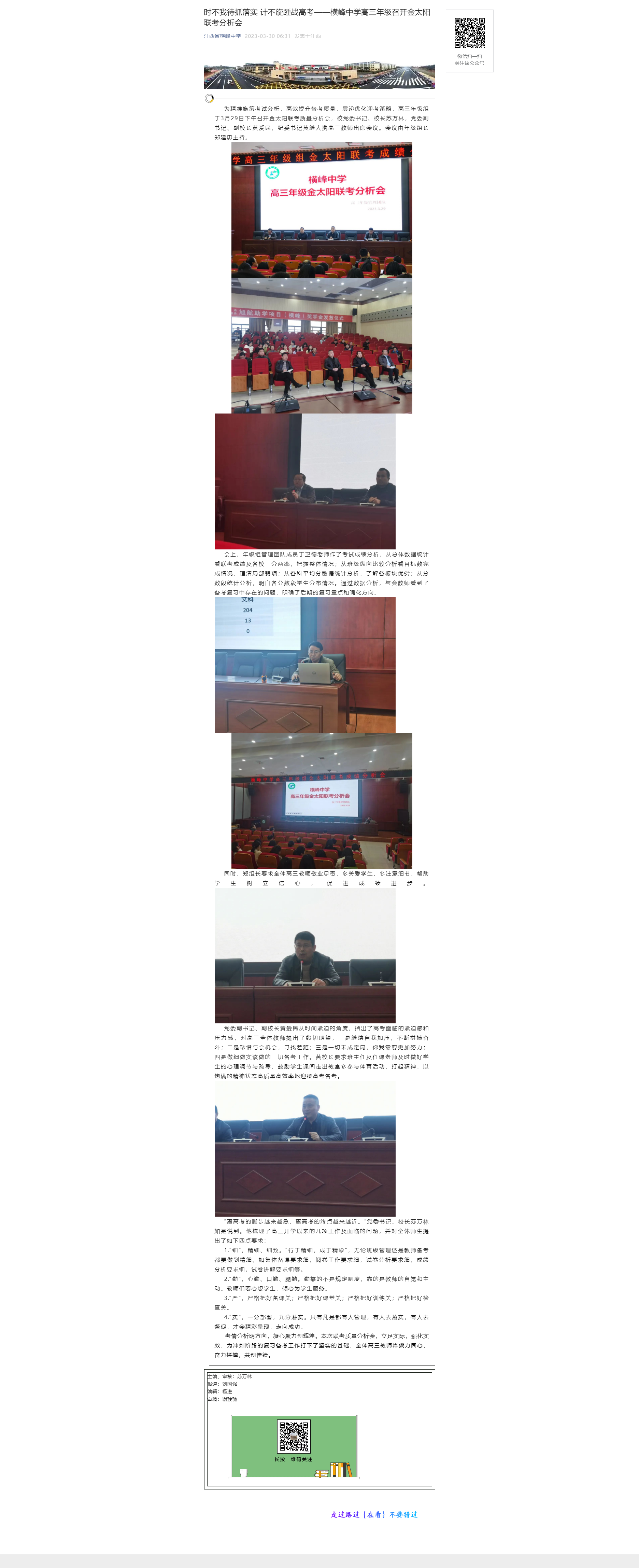 | 时不我待抓落实 计不旋踵战高考——横峰中学高三年级召开金太阳联考分析会 | |||