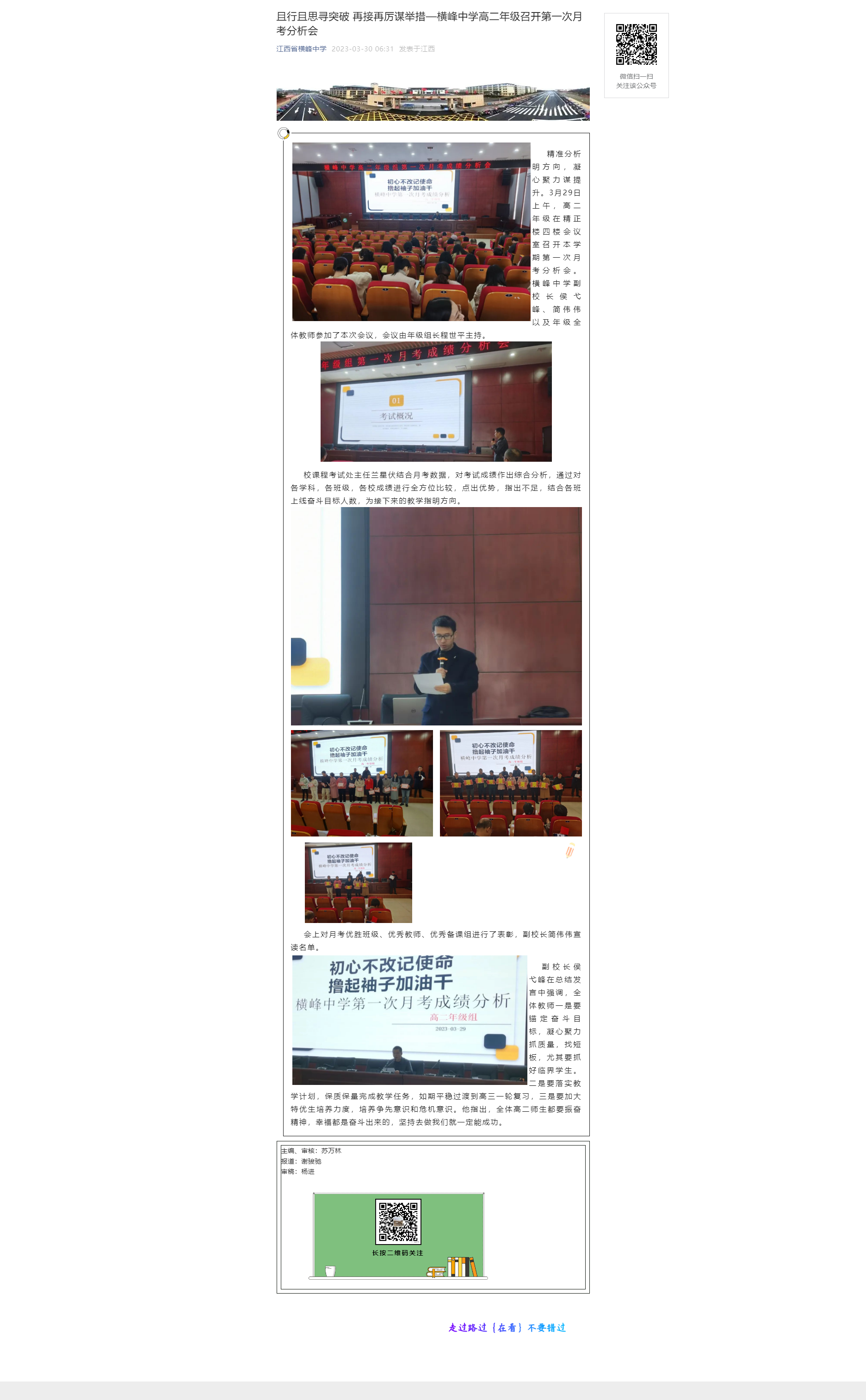 | 且行且思寻突破 再接再厉谋举措—横峰中学高二年级召开第一次月考分析会 | |||