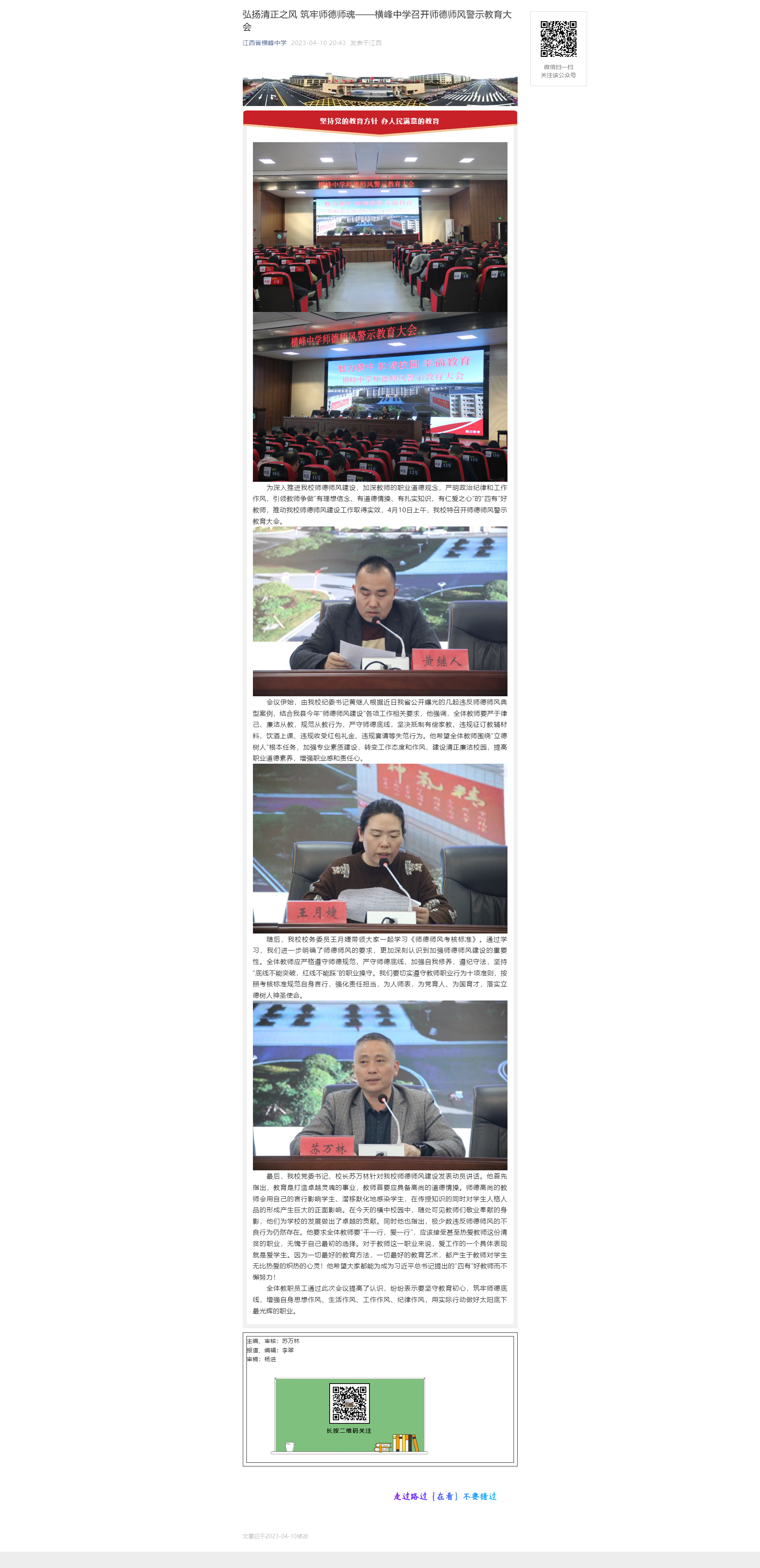 | 弘扬清正之风 筑牢师德师魂——横峰中学召开师德师风警示教育大会 | |||