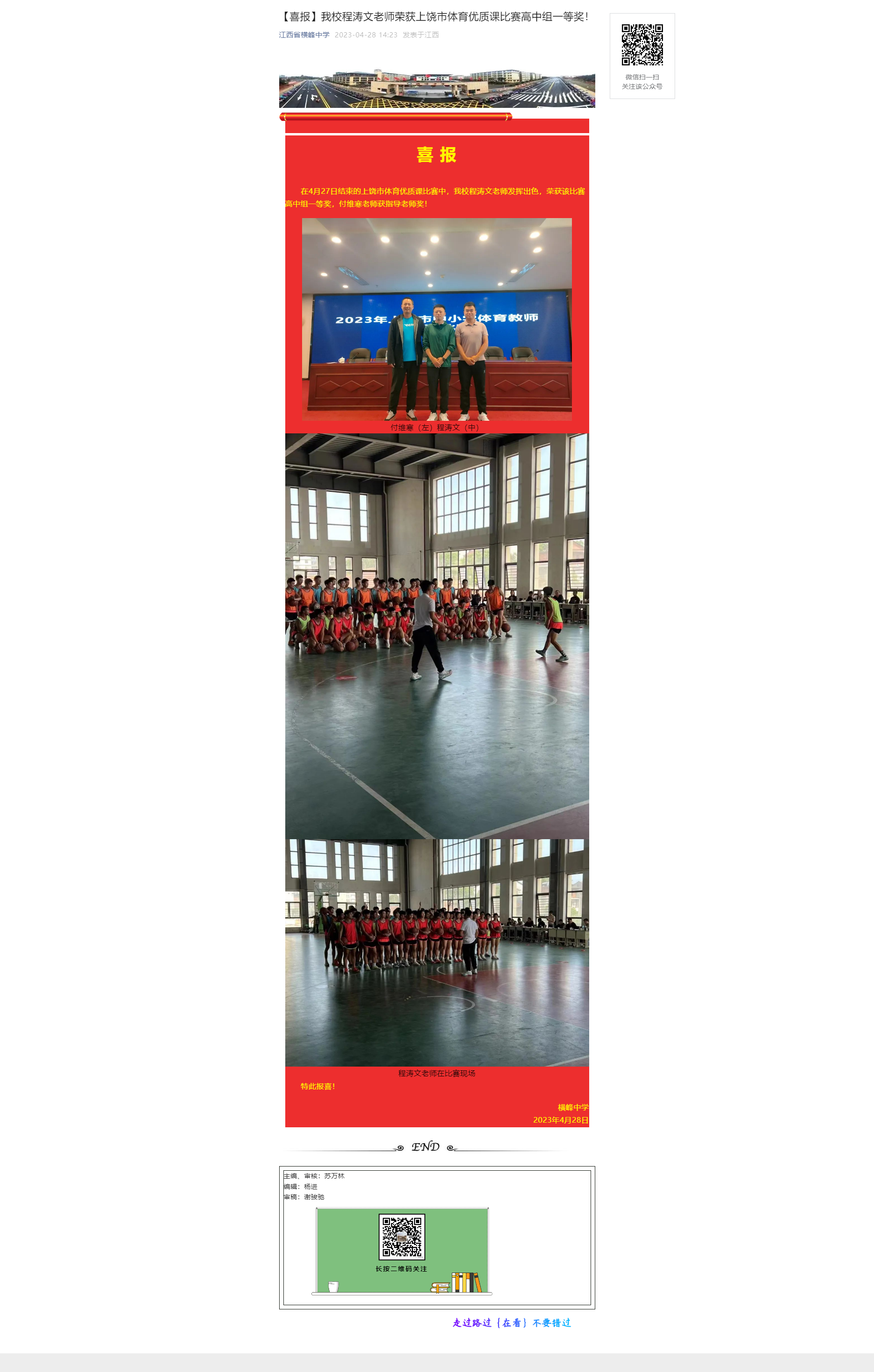 | 【喜报】我校程涛文老师荣获上饶市体育优质课比赛高中组一等奖! | |||