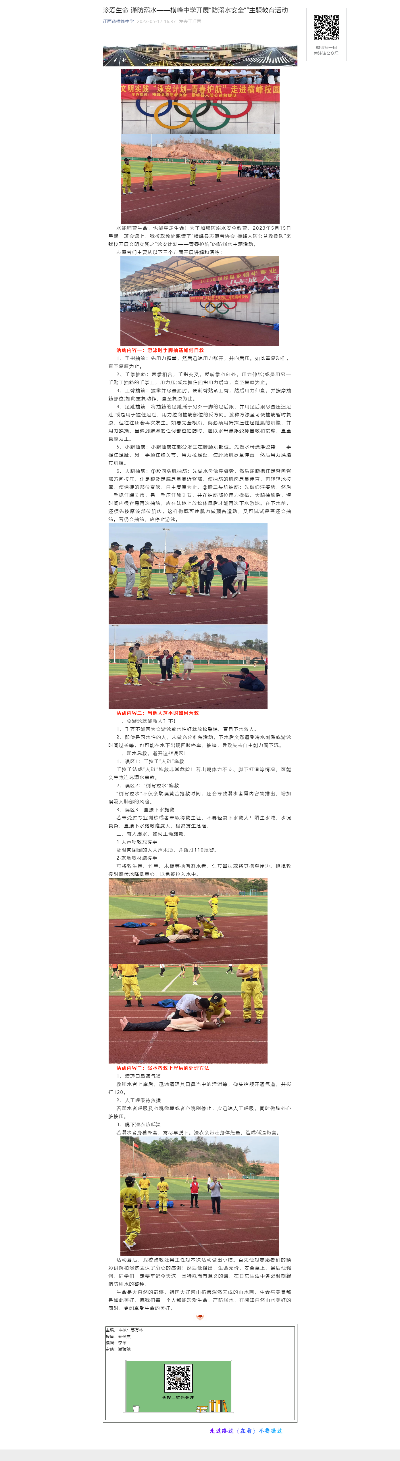 | 珍爱生命 谨防溺水——横峰中学开展“防溺水安全“”主题教育活动 | |||