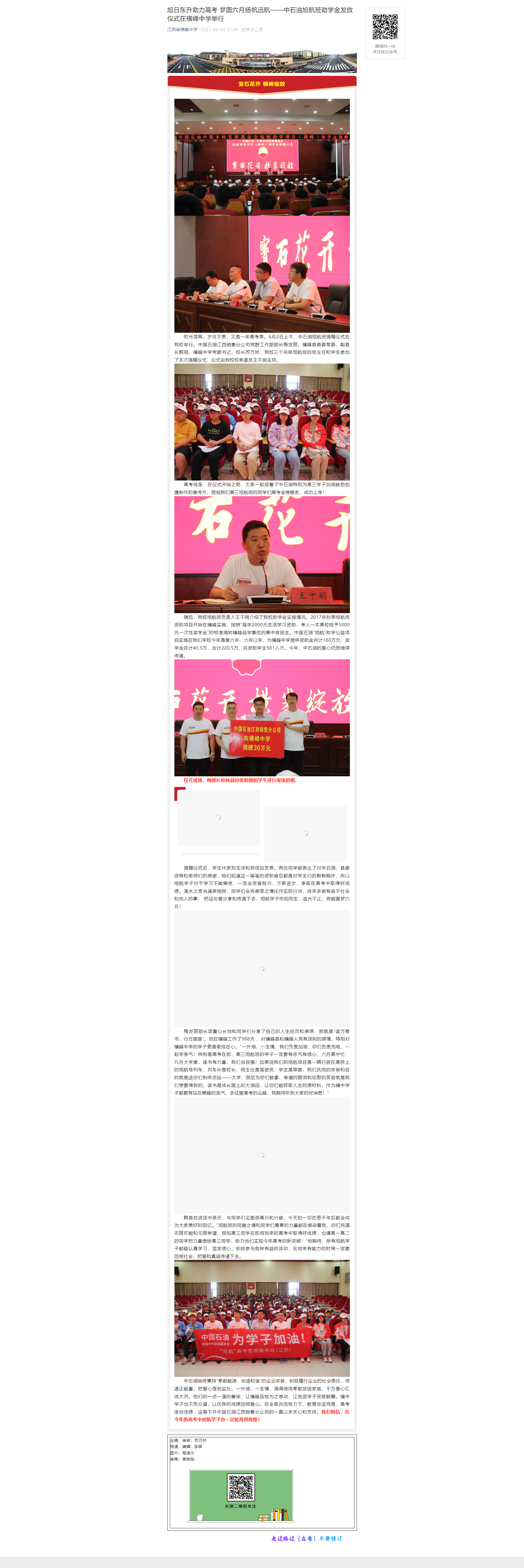 | 旭日东升助力高考 梦圆六月扬帆远航——中石油旭航班助学金发放仪式在横峰中学举行 | |||
