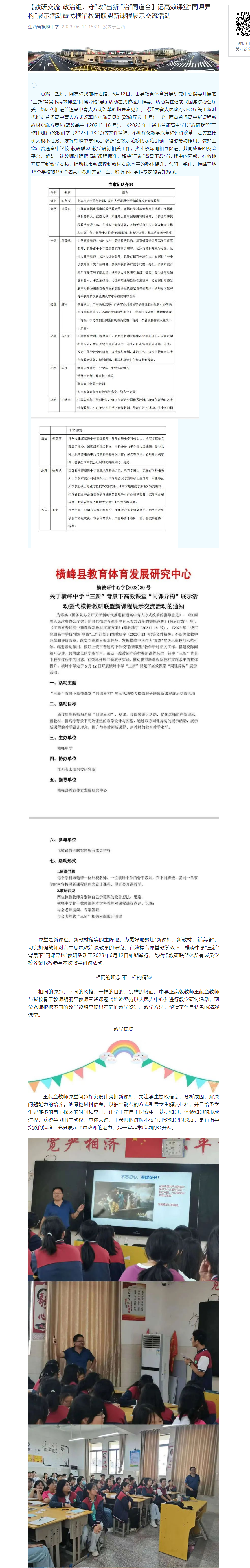 | 【教研交流-政治组:守“政”出新 “治”同道合】记高效课堂“同课异构”展示活动暨弋横铅教研联盟新课程展示交流活动 | |||