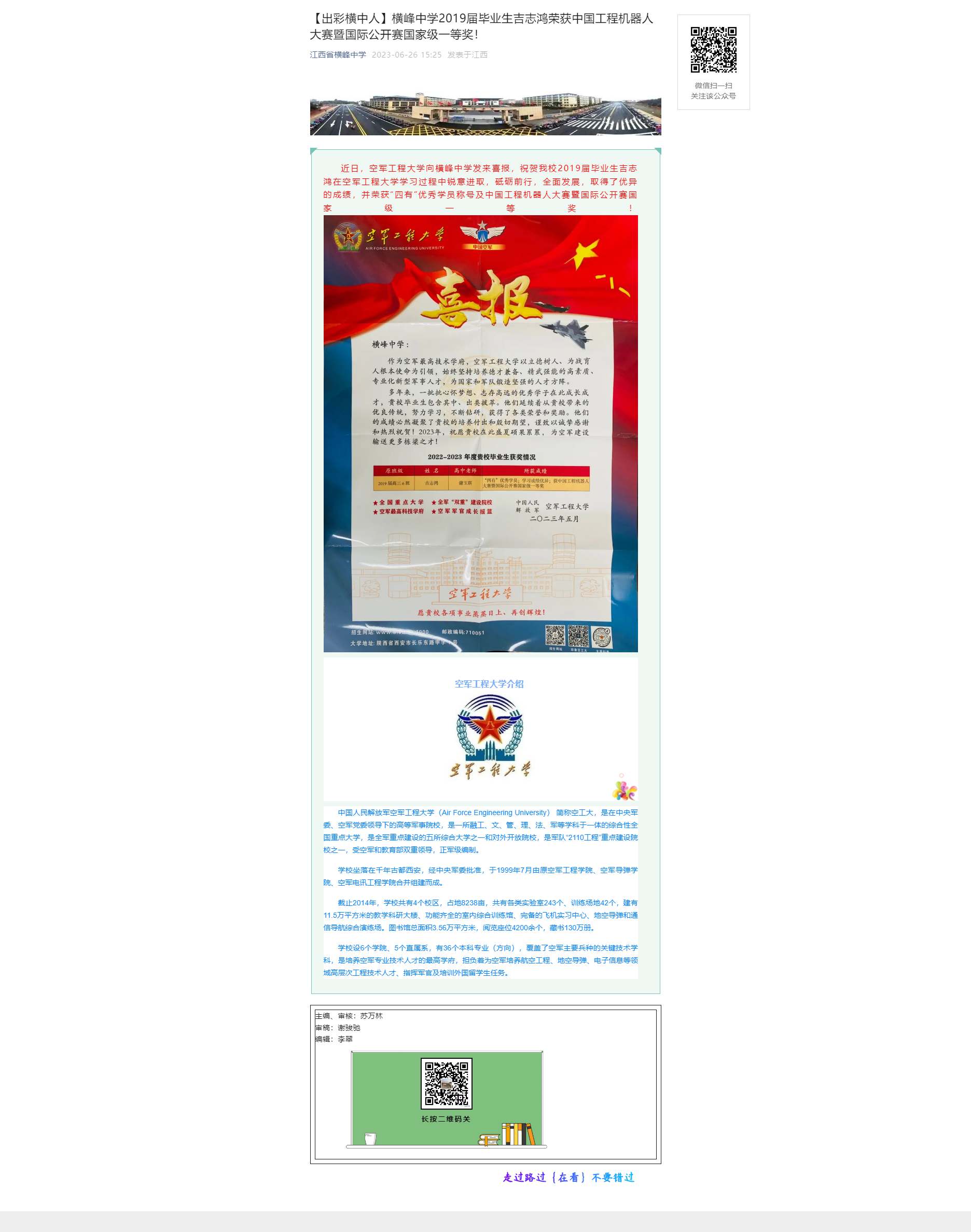 | 【出彩横中人】横峰中学2019届毕业生吉志鸿荣获中国工程机器人大赛暨国际公开赛国家级一等奖! | |||