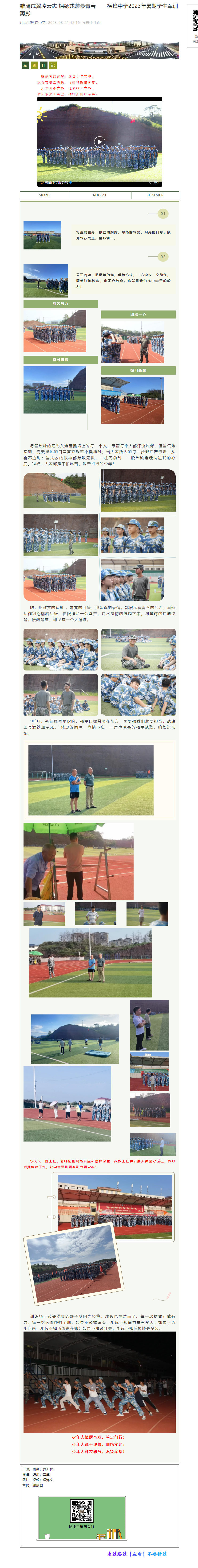 | 雏鹰试翼凌云志 锦绣戎装最青春——横峰中学2023年暑期学生军训剪影 | |||