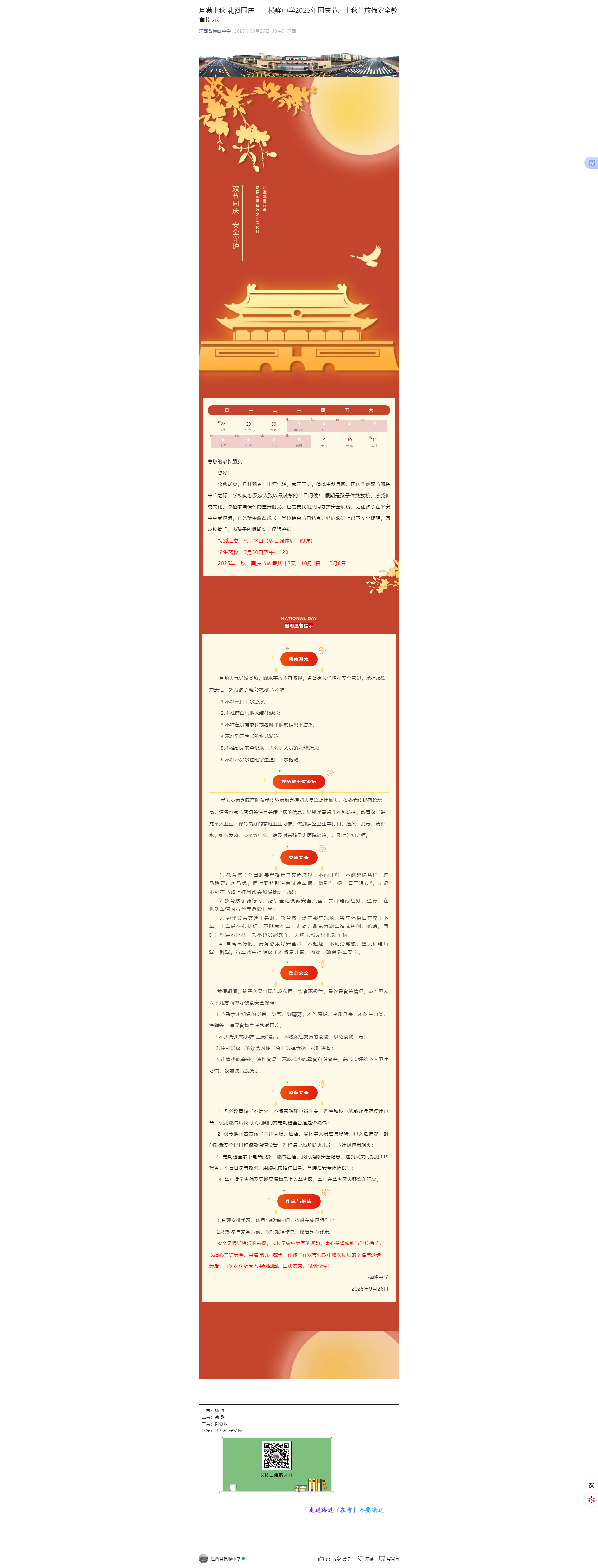 | 月满中秋 礼赞国庆——横峰中学2025年国庆节、中秋节放假安全教育提示 | |||