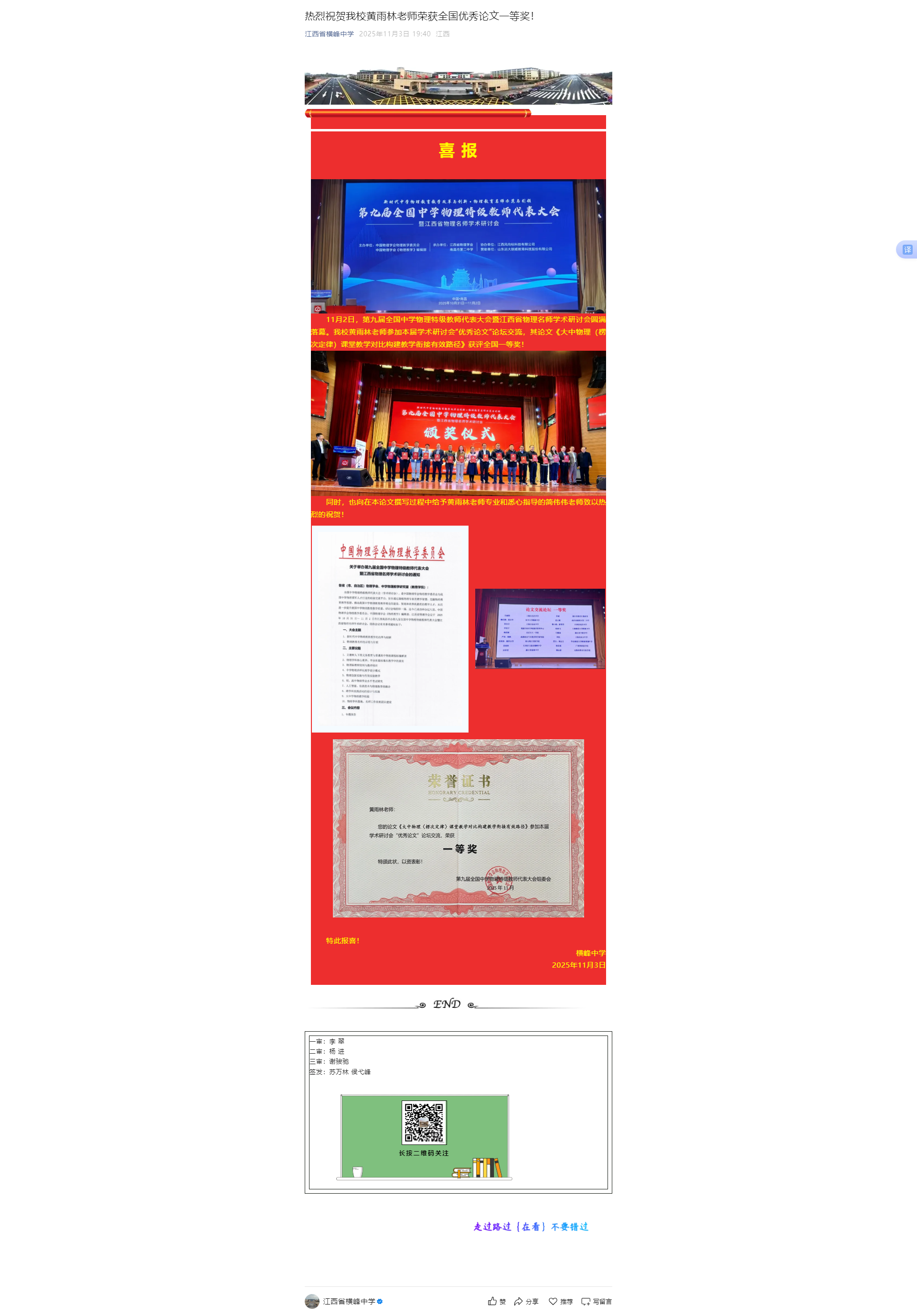 | 热烈祝贺我校黄雨林老师荣获全国优秀论文一等奖! | |||