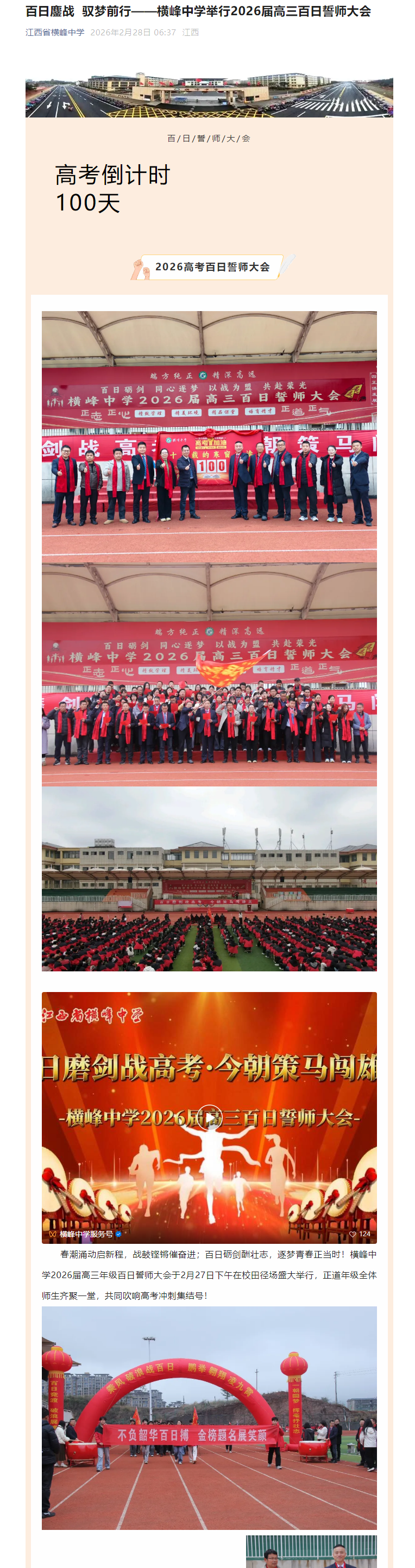 | 百日鏖战 驭梦前行——横峰中学举行2026届高三百日誓师大会 | |||